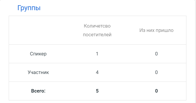 Здесь отображается статистика о приходе участников на мероприятие.