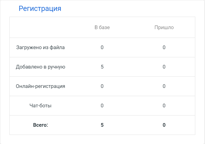 Здесь вы можете отслеживать ход регистрации по числам и источнику добавления.